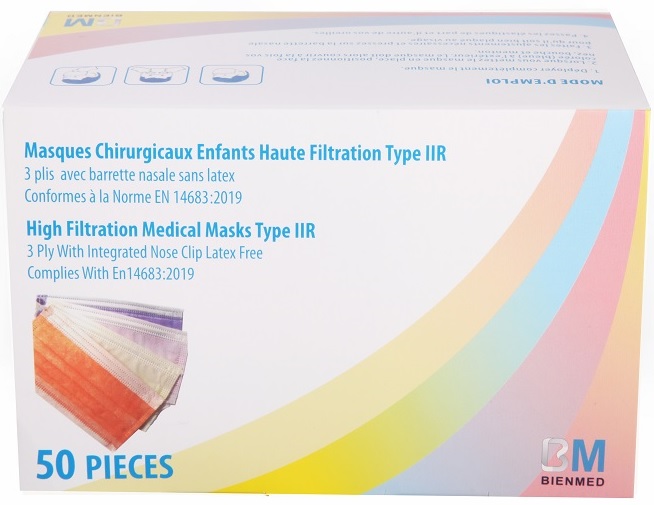 Masques enfants type IIR, couleur : multicolore